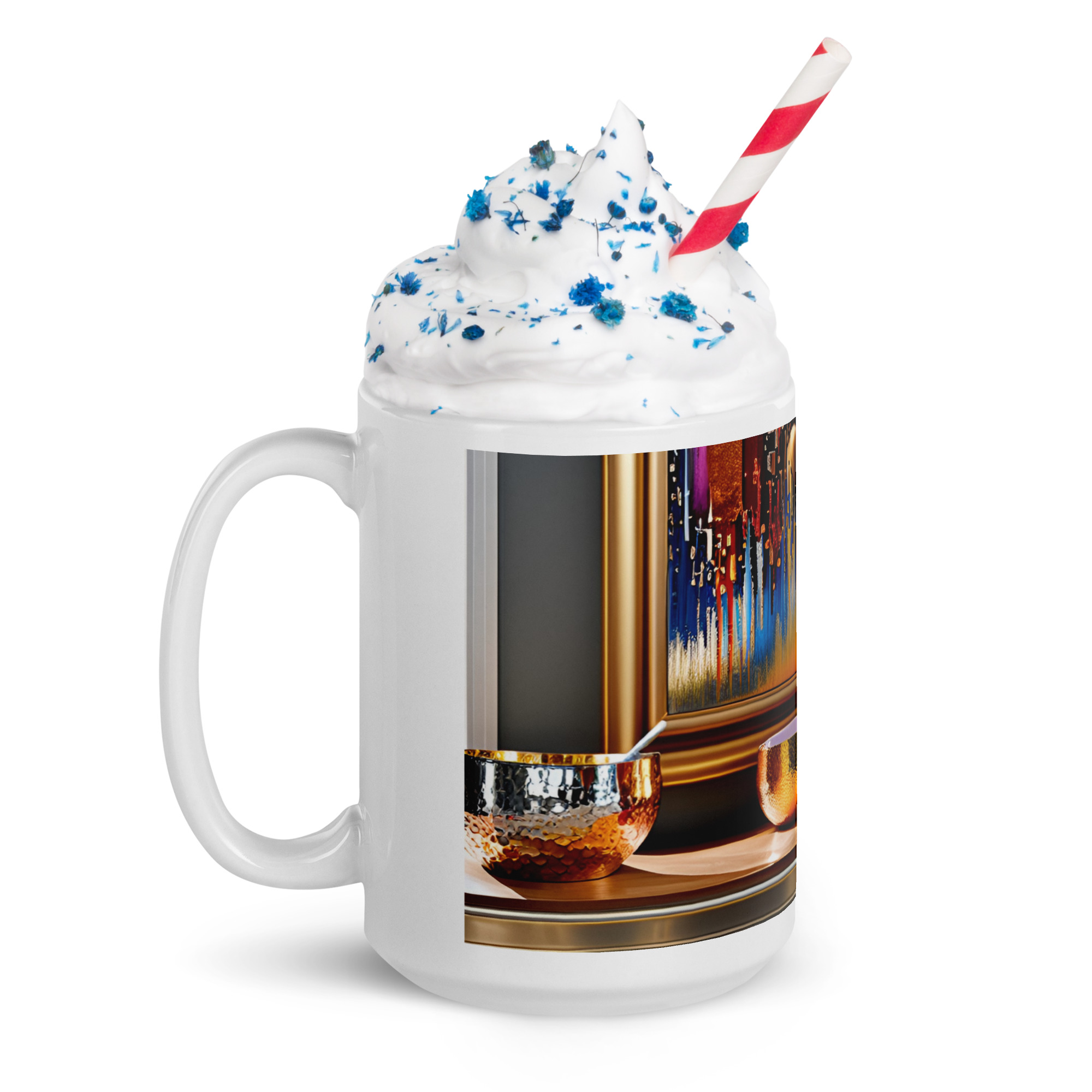 • 15 oz mug dimensions: 4.7″ (11.9 cm) in height, 3.3″ (8.5 cm) in diameter