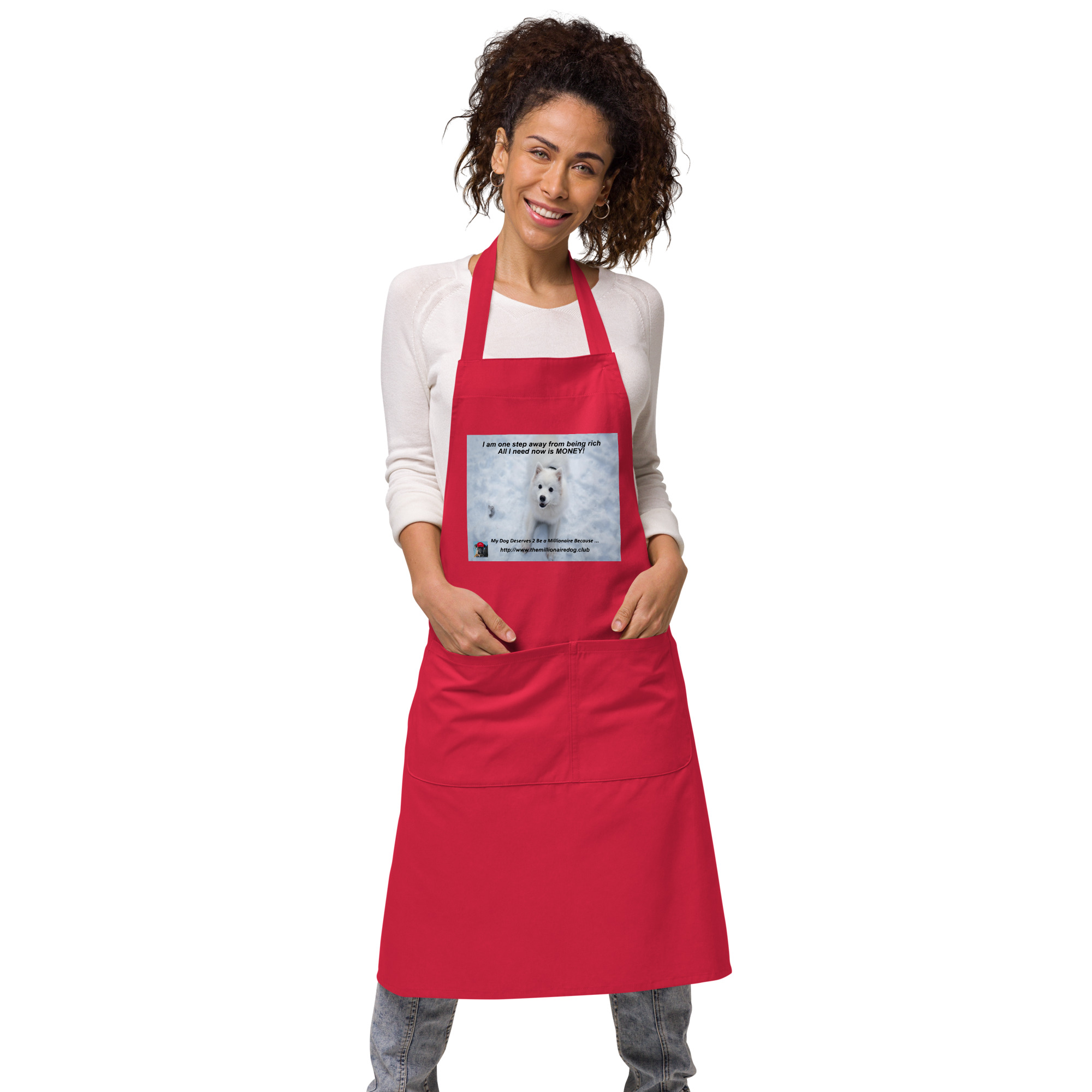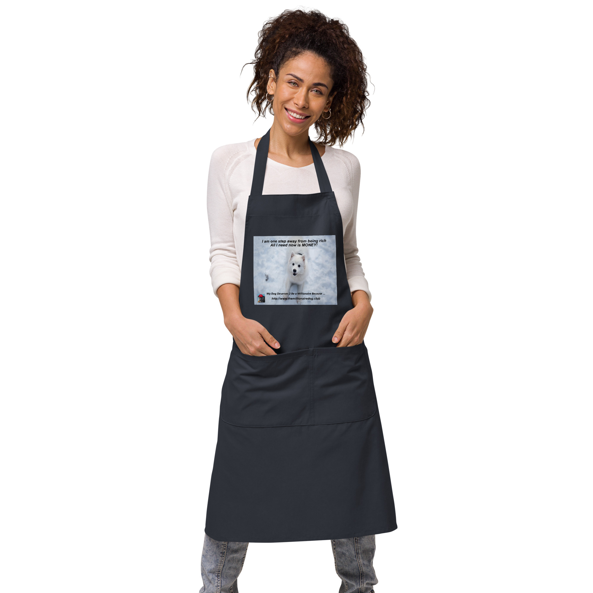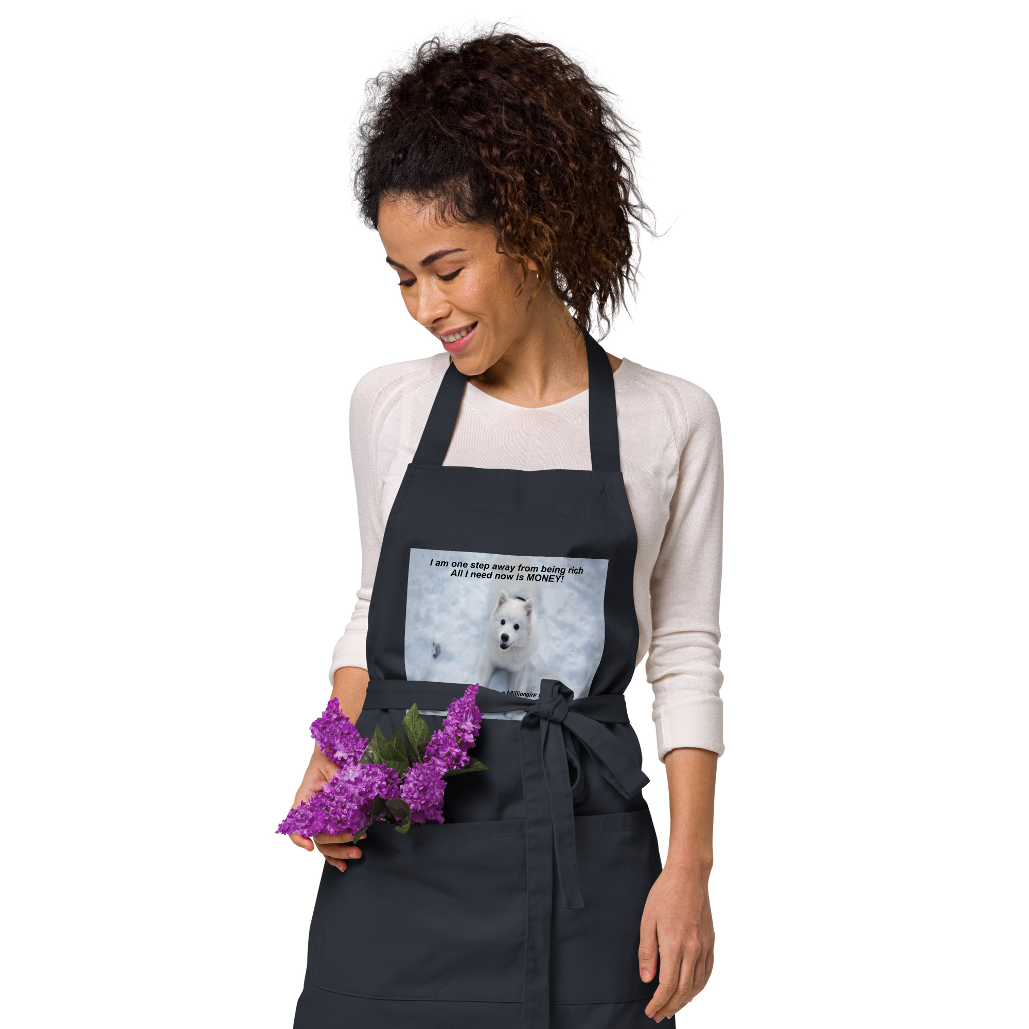 The dream is alive and it’s wearing an apron. Whether you’re grilling, baking, or just protecting your outfit while you plot your next financial move, this Millionaire Dog Club organic cotton apron keeps you covered in style. The message says everything: you’re basically there. Just need the money.