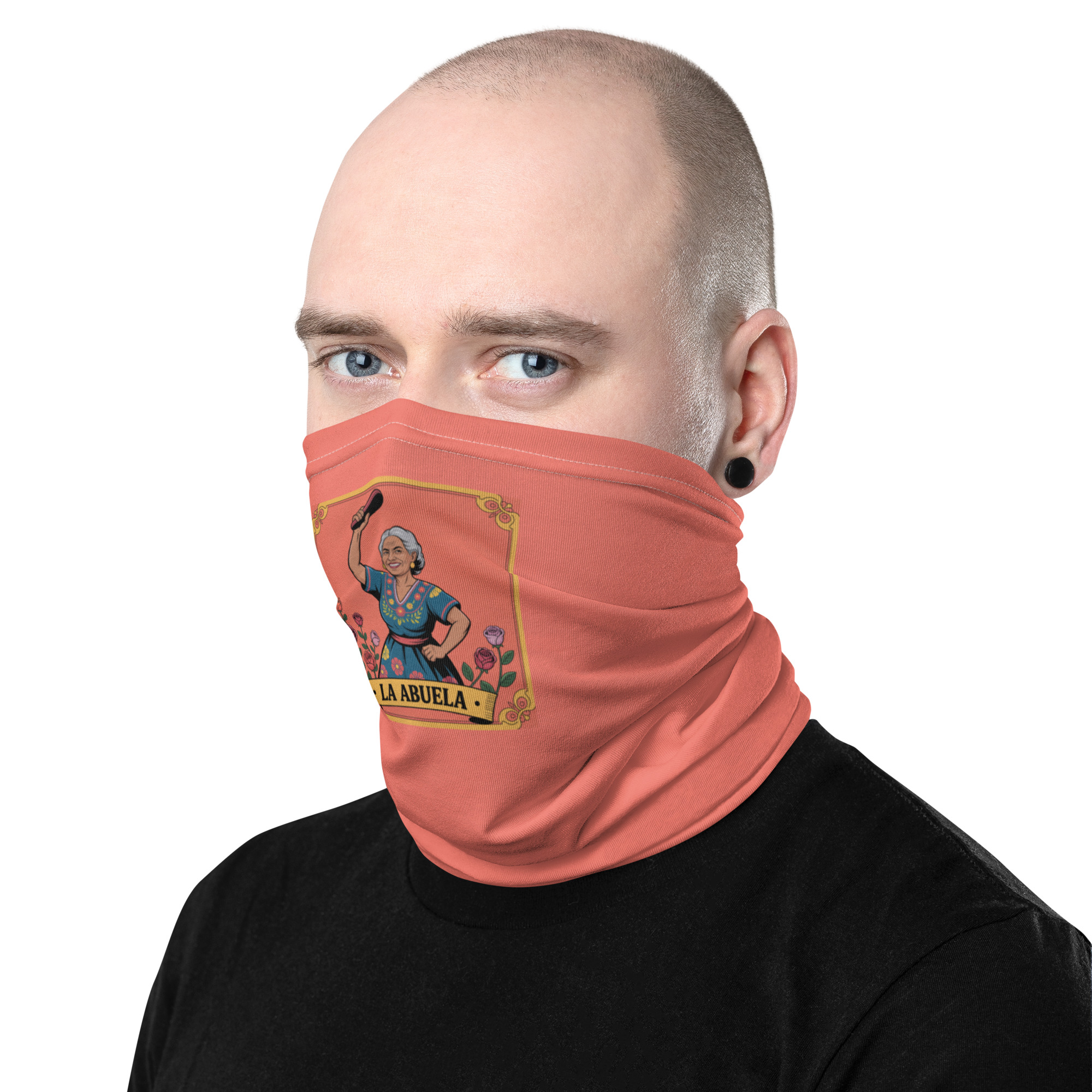 Premium neck gaiter. La Abuela LoterĂa card design. Soft, stretchy, breathable. Machine washable.
