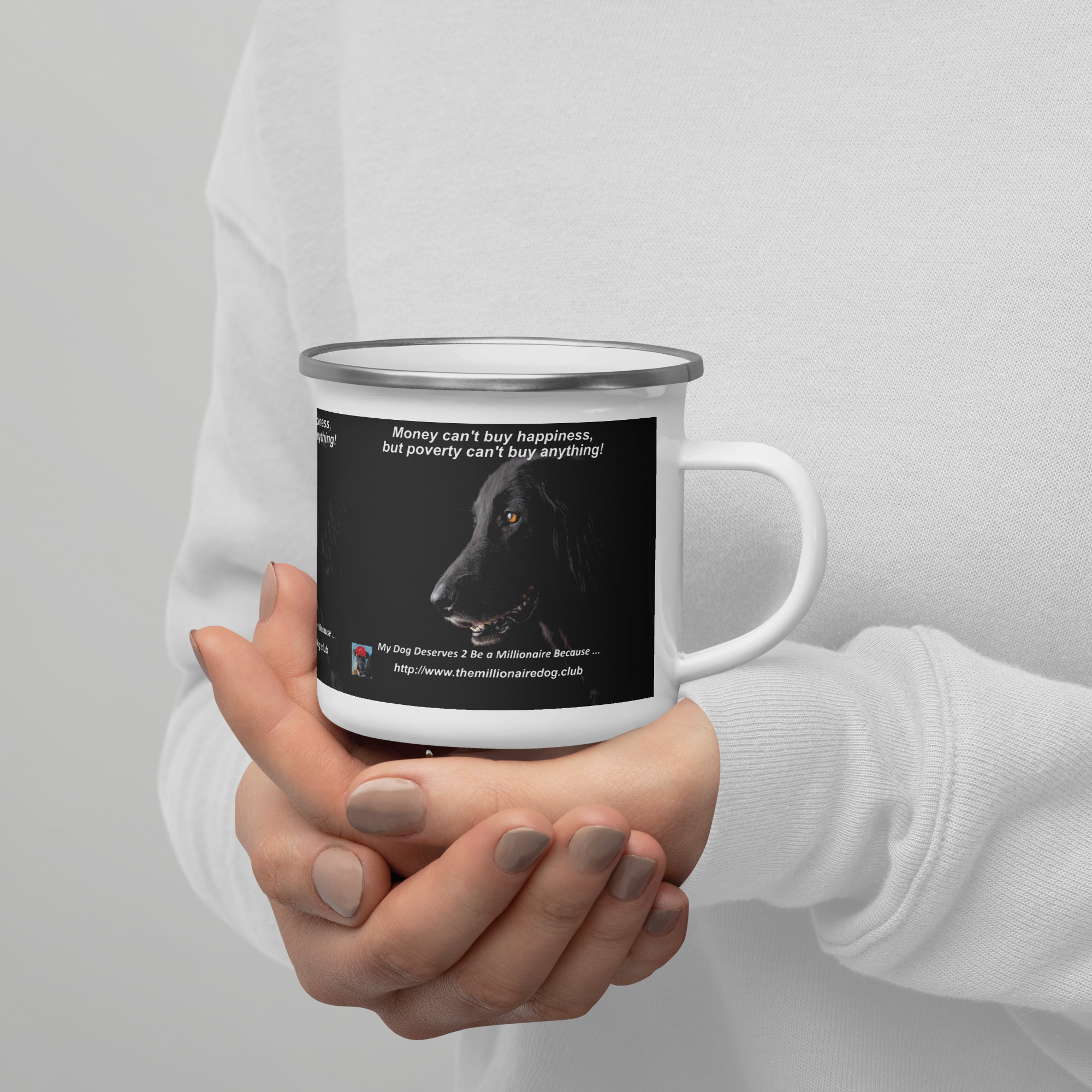 Tin Cup Watchdog #21 – “Money Can’t Buy Happiness, But Poverty Can’t Buy Anything!” – Enamel Mug