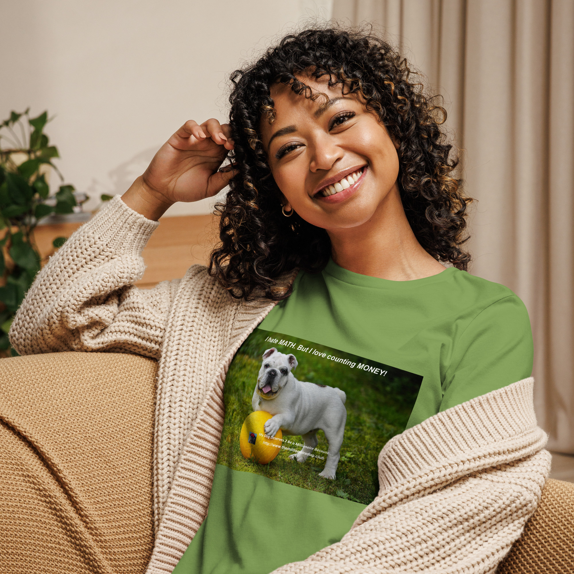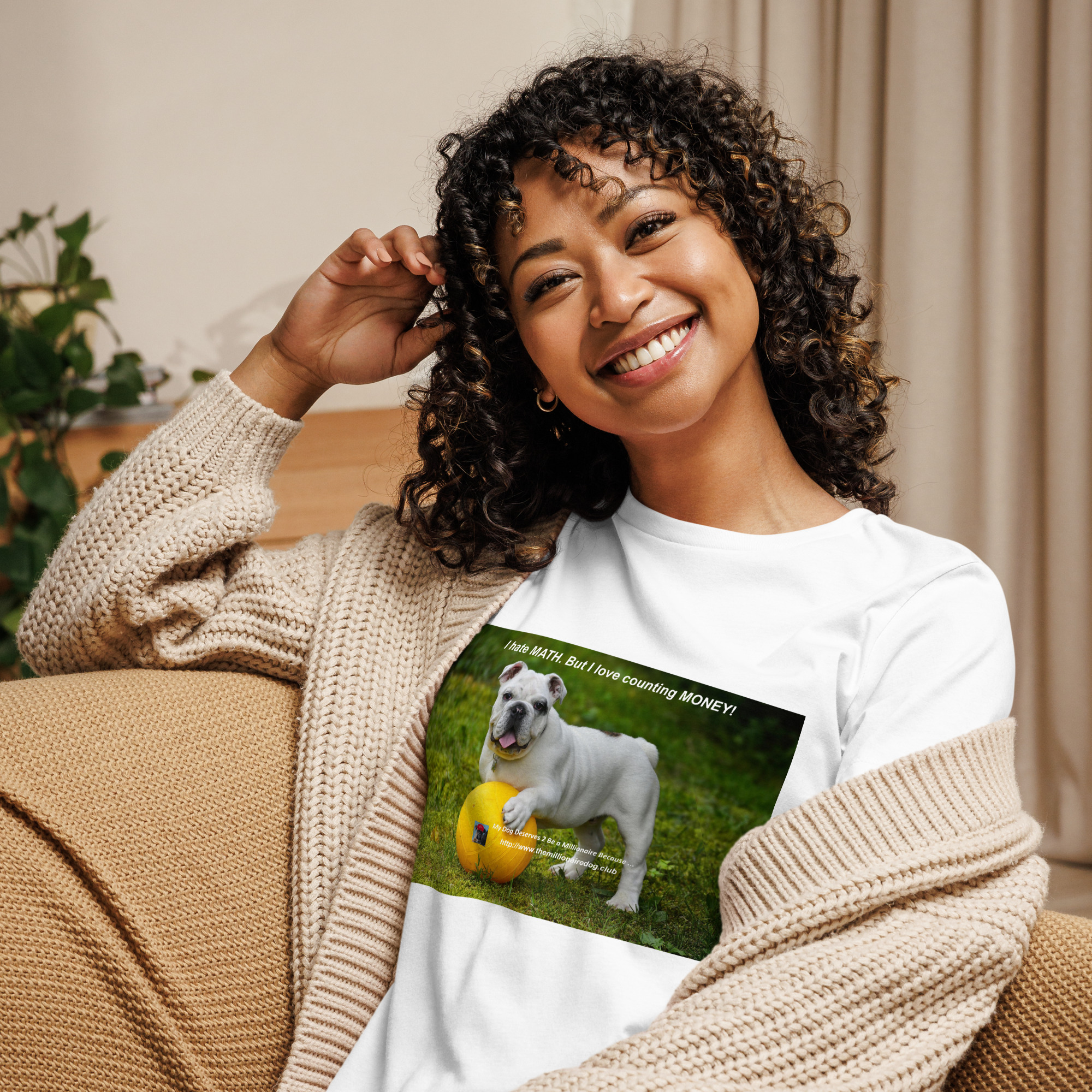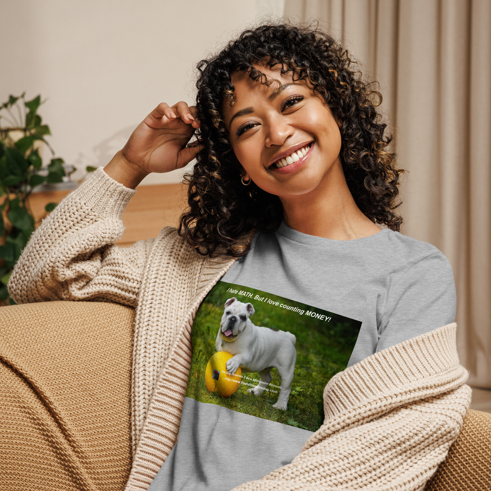 Comfortable, bold, and completely honest. This relaxed women’s tee is for the dog lover who also loves counting money.