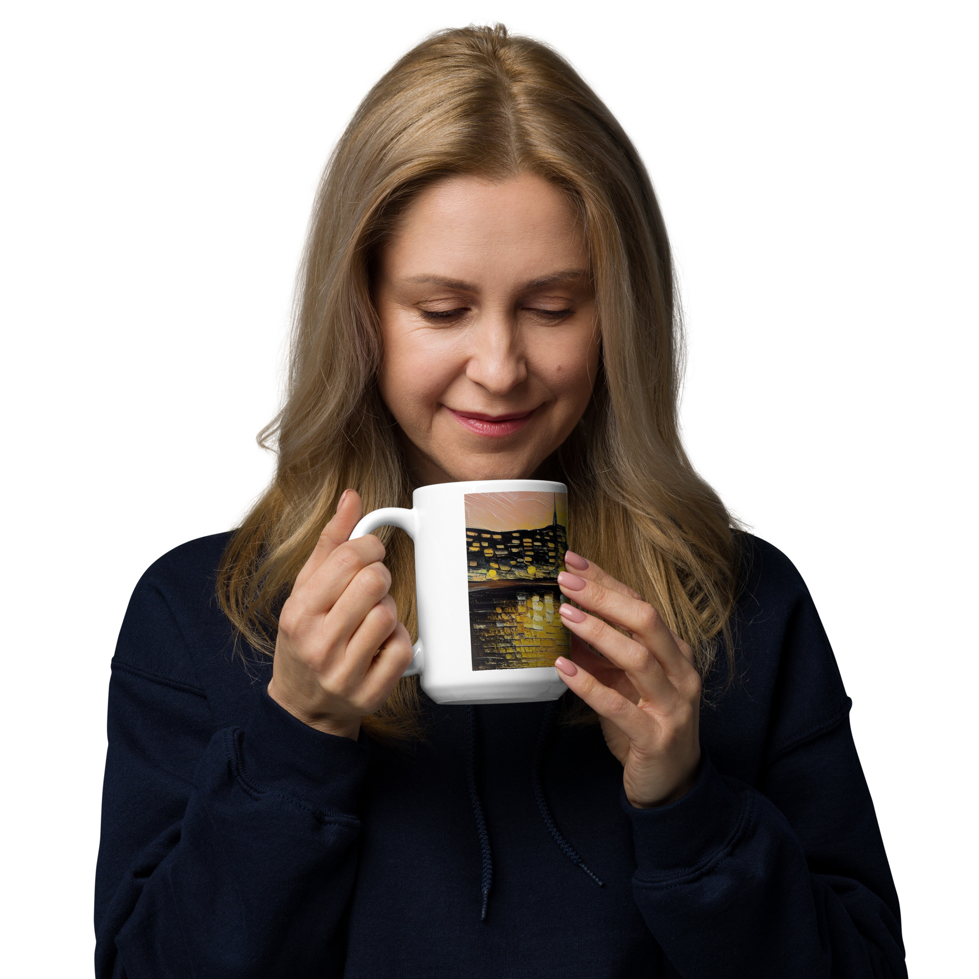 “Urbane” suggests something polished — the person who moves through complex environments with ease, who understands nuance, who appreciates texture and depth in equal measure. This mug lives up to the name. Rich, layered color that rewards examination, rendered on a clean glossy white surface that feels like a city corner at the right hour. For the sophisticated eye, the curious mind, and the good coffee. $22. dreamincolor.store